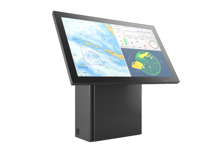 The S-Line 55″ Floor Stand is designed for floor stand and chart table applications (back of bridge) of the DuraMON 55″ S-Line monitor, and features servo automated tilt and lift functionality enabling chart table configuration.